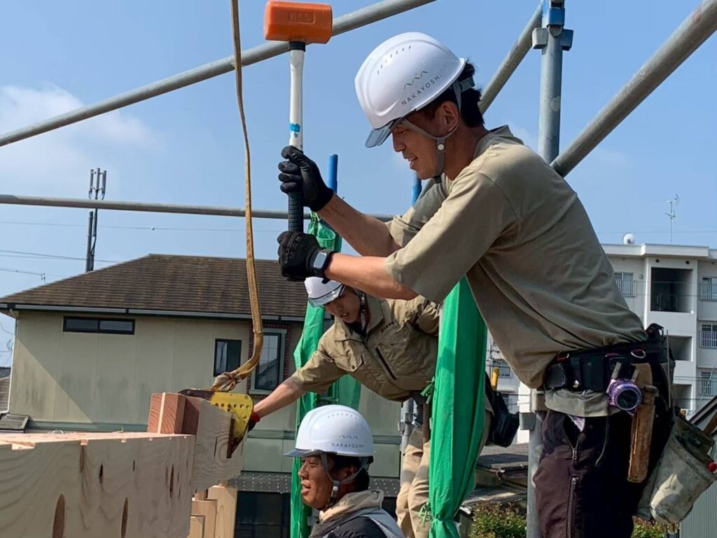 • 上棟(建前):柱や梁など、建物の骨組みを組み上げる