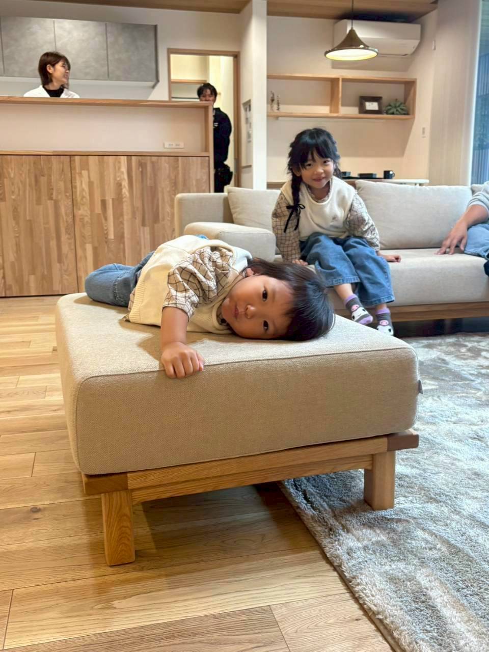 当日は家族そろっての撮影でしたが、念願の自邸の完成にこども達も大はしゃぎ!