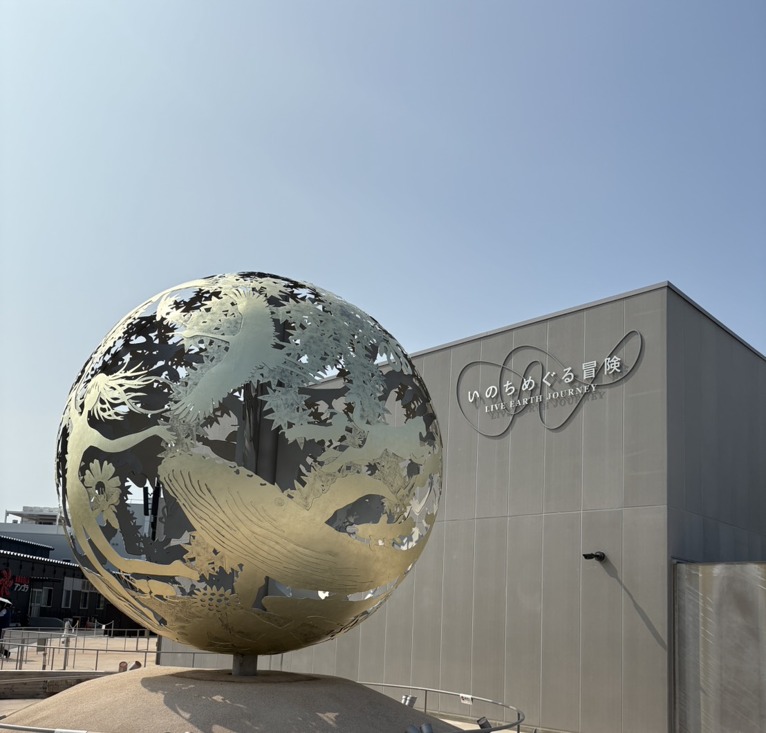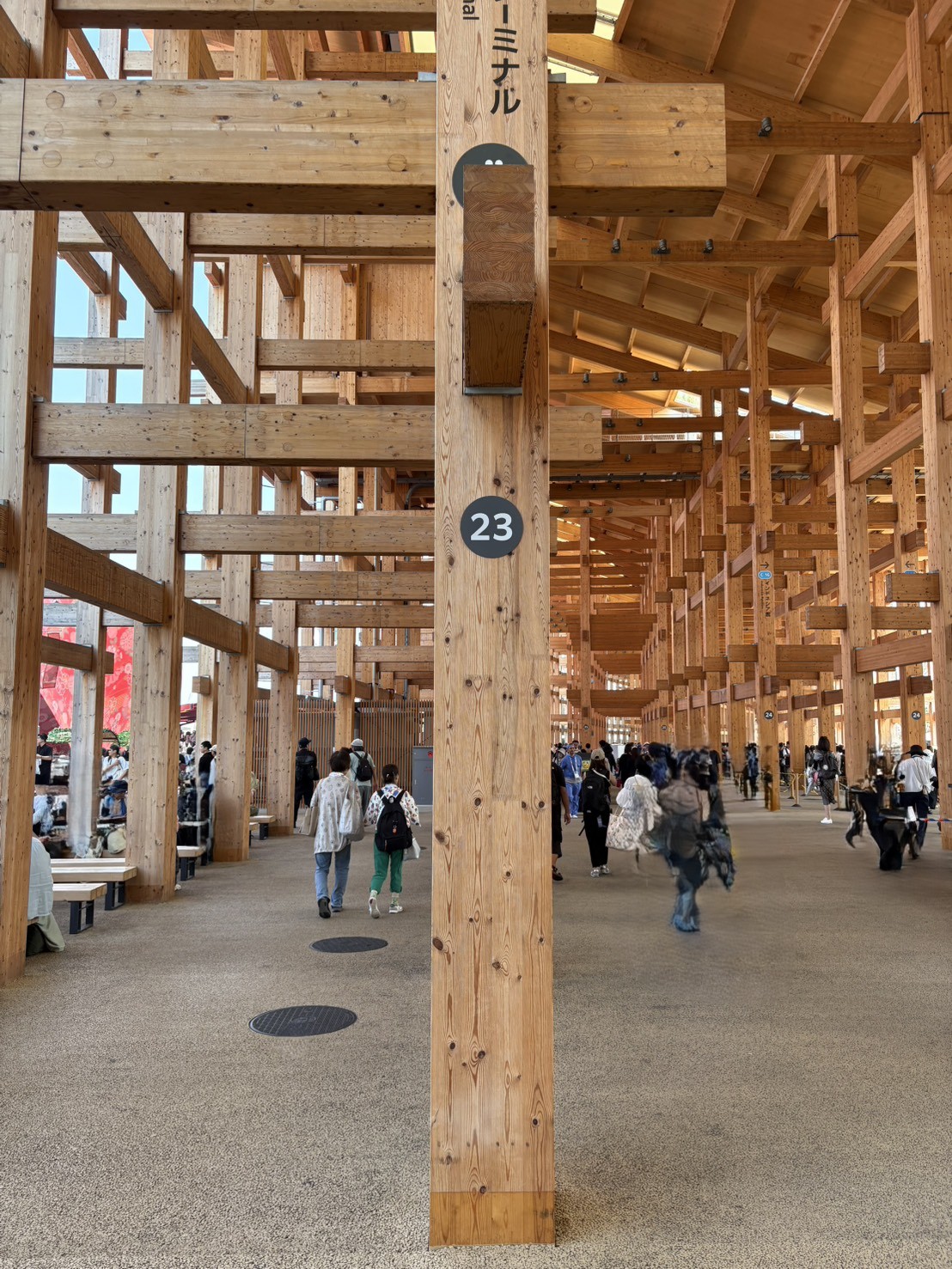 会場に入るまでに視界に飛び込んでくる「大屋根リング」は、世界最大級の木造建築なだけあって、実際に見ると迫力がすごく、人がとても小さく感じました。