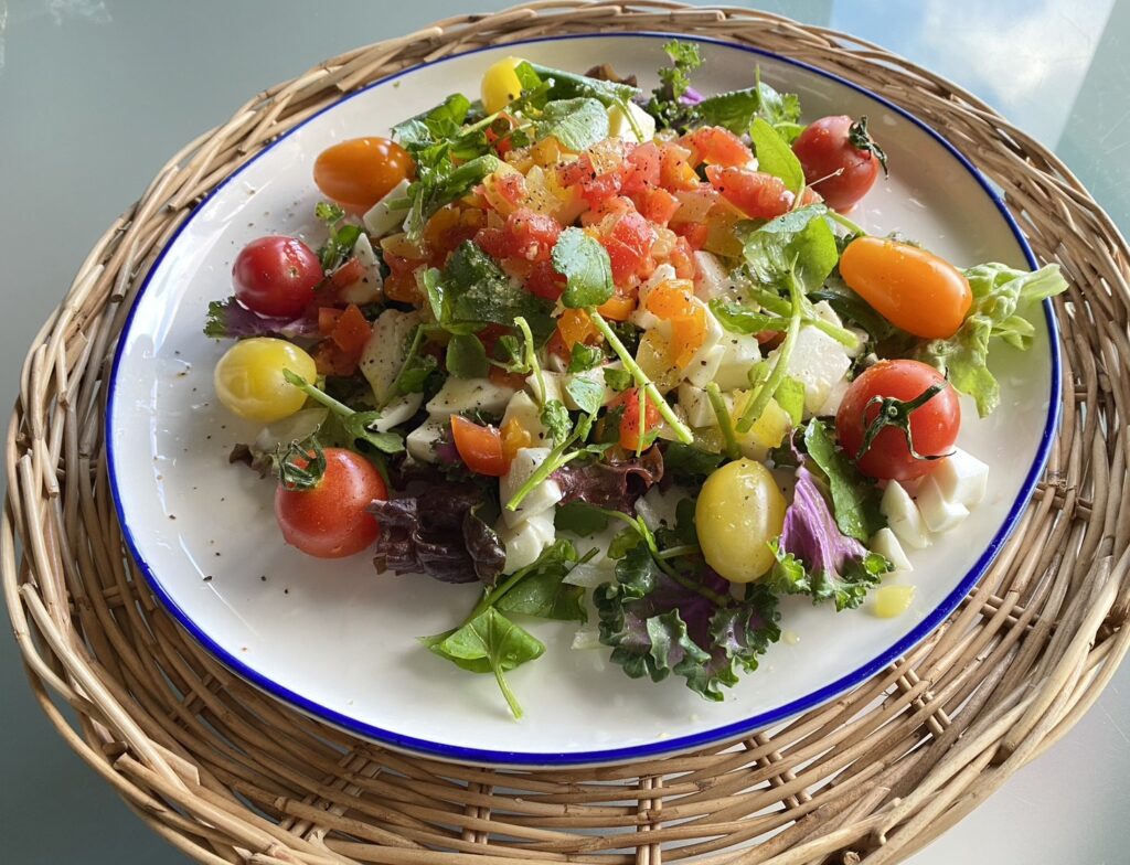 特にドレッシングは使いませんでしたが、細かく切ったトマトとオリーブオイル、レモンが混じって
