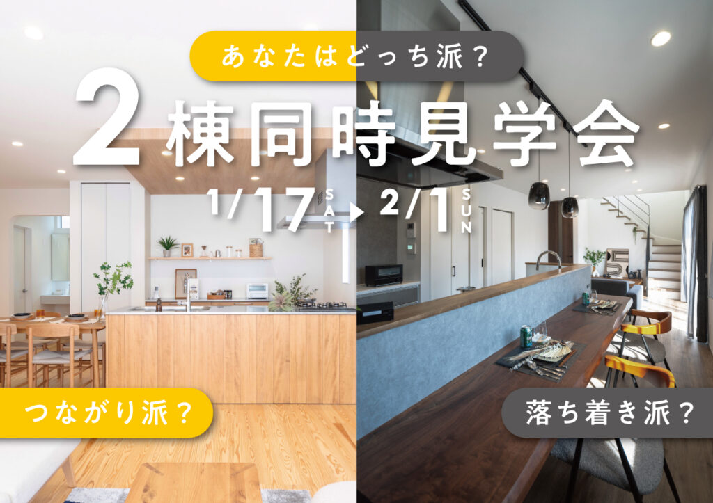 さて、開催中の見学会では、テイストの異なる2棟のおウチを同時に見ることができます。