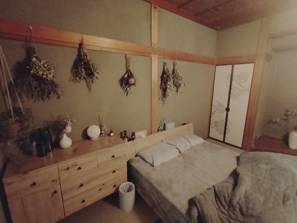 今回寝室は、好きなものを揃えて、こだわった空間にしたので