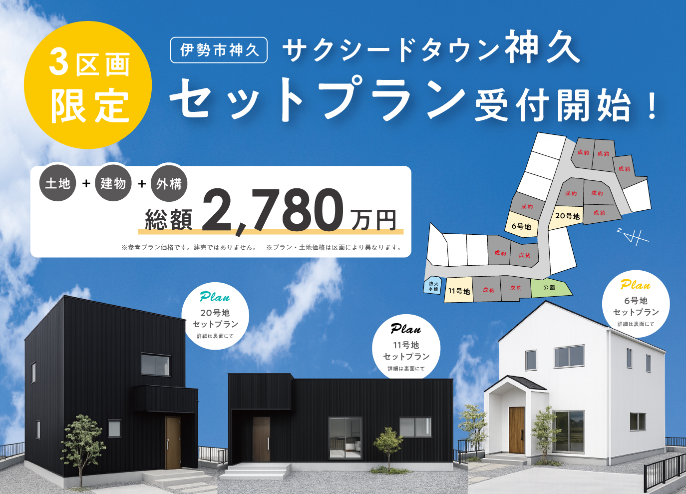 【伊勢市神久・限定3区画】今だけお得な特典付き!! サクシードタウン神久 セットプ...