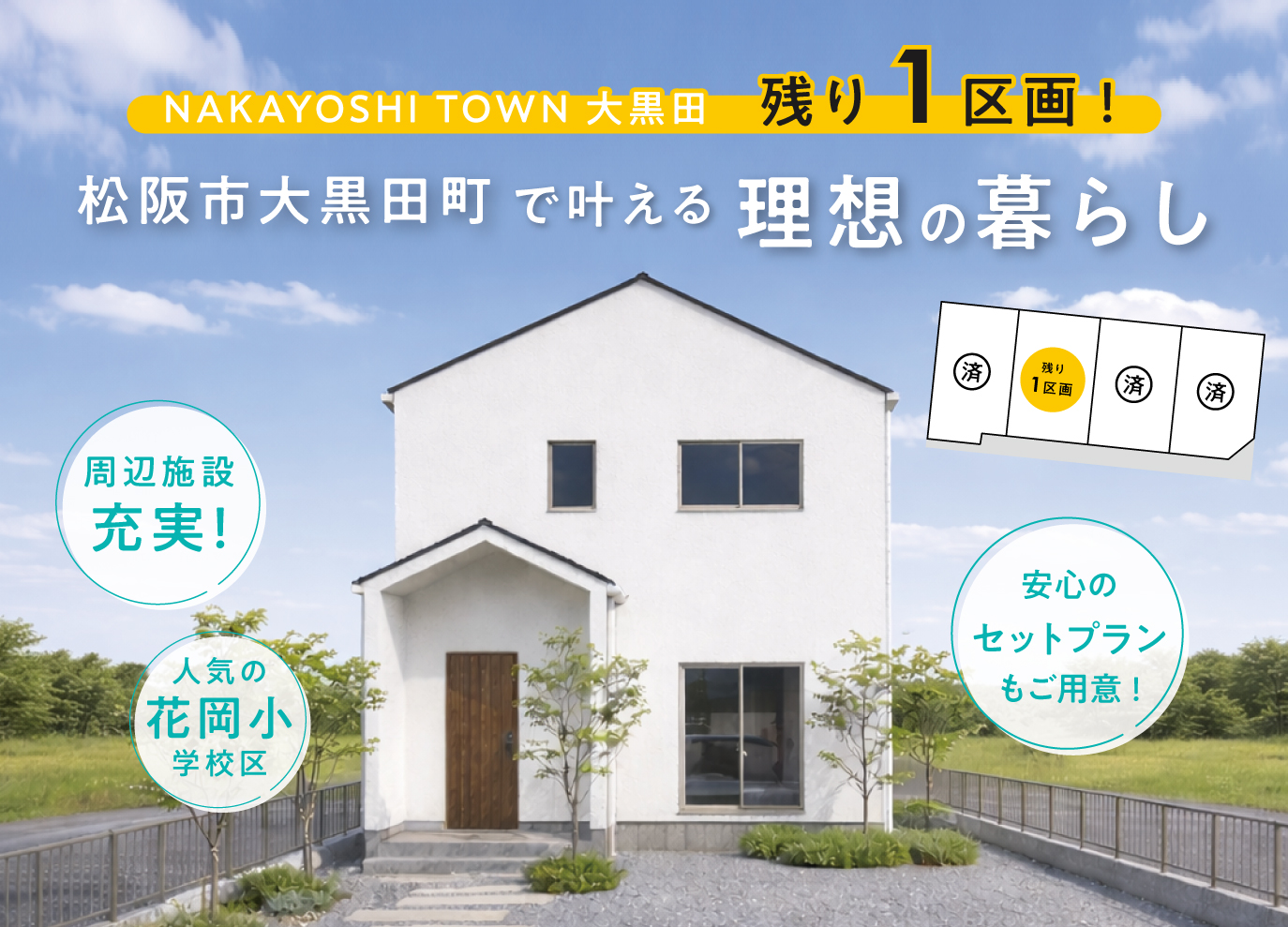 【松阪市大黒田町・残り1区画】今だけお得な特典付き!! 土地購入・セットプラン 受...