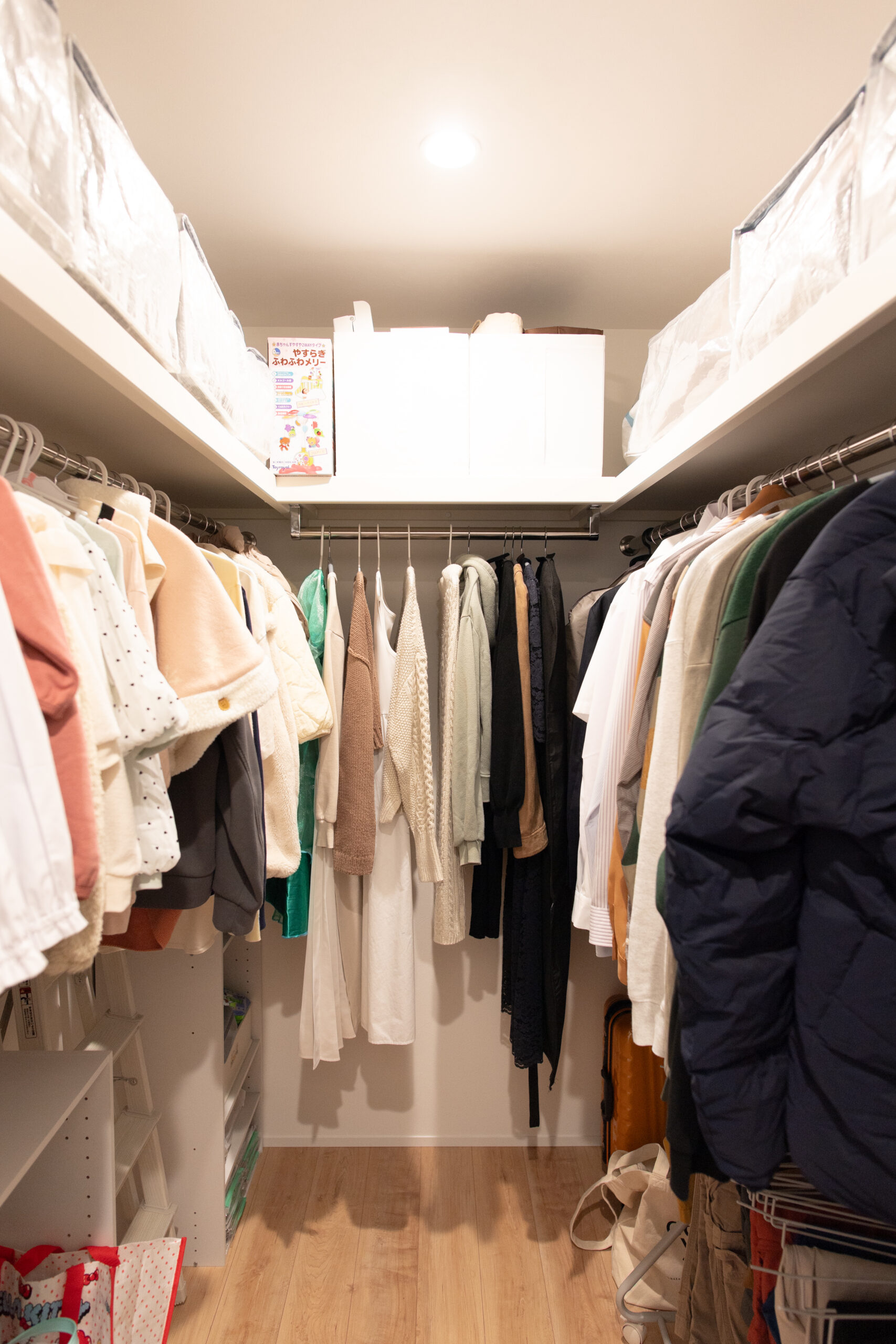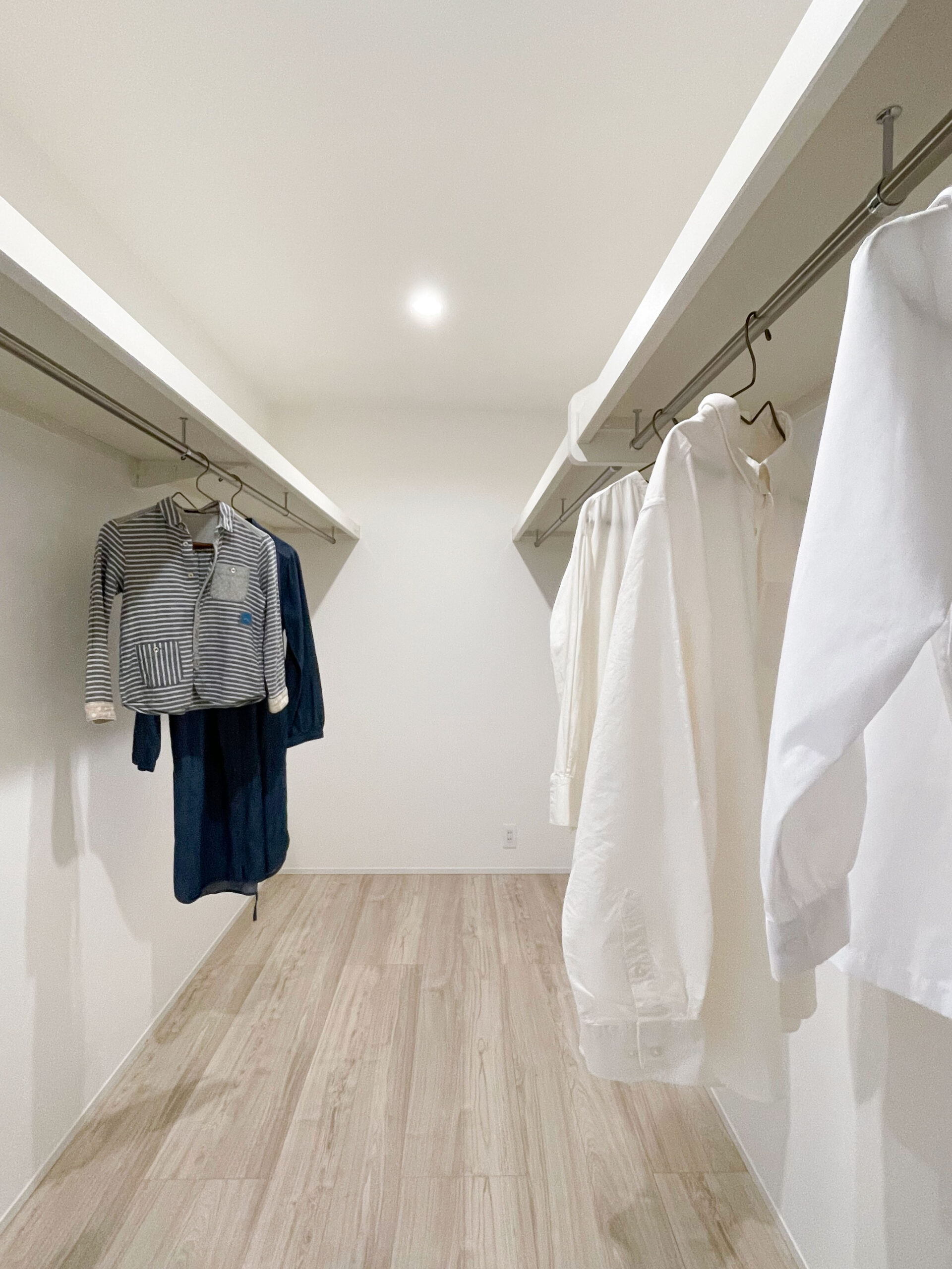 また、2階のウォークインクローゼットは、家族みんなの衣類を一ヶ所にまとめて片づけられ、毎日の生活動線がスムーズに。