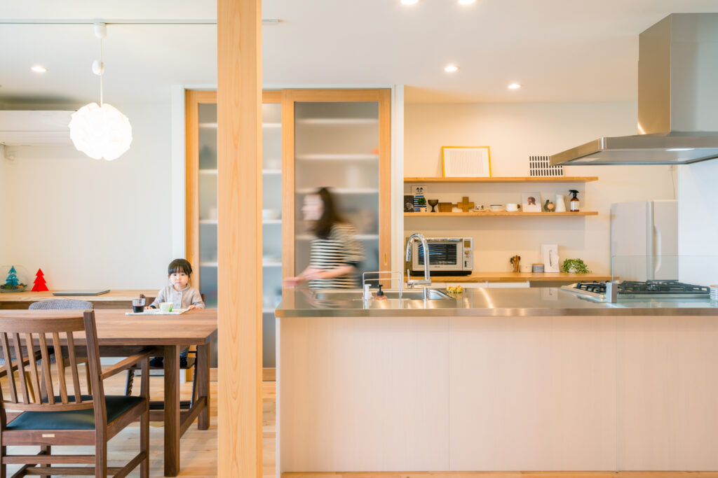 家族みんなが自然と集まり、子どもの成長を見守れる心地よい空間が広がっています。