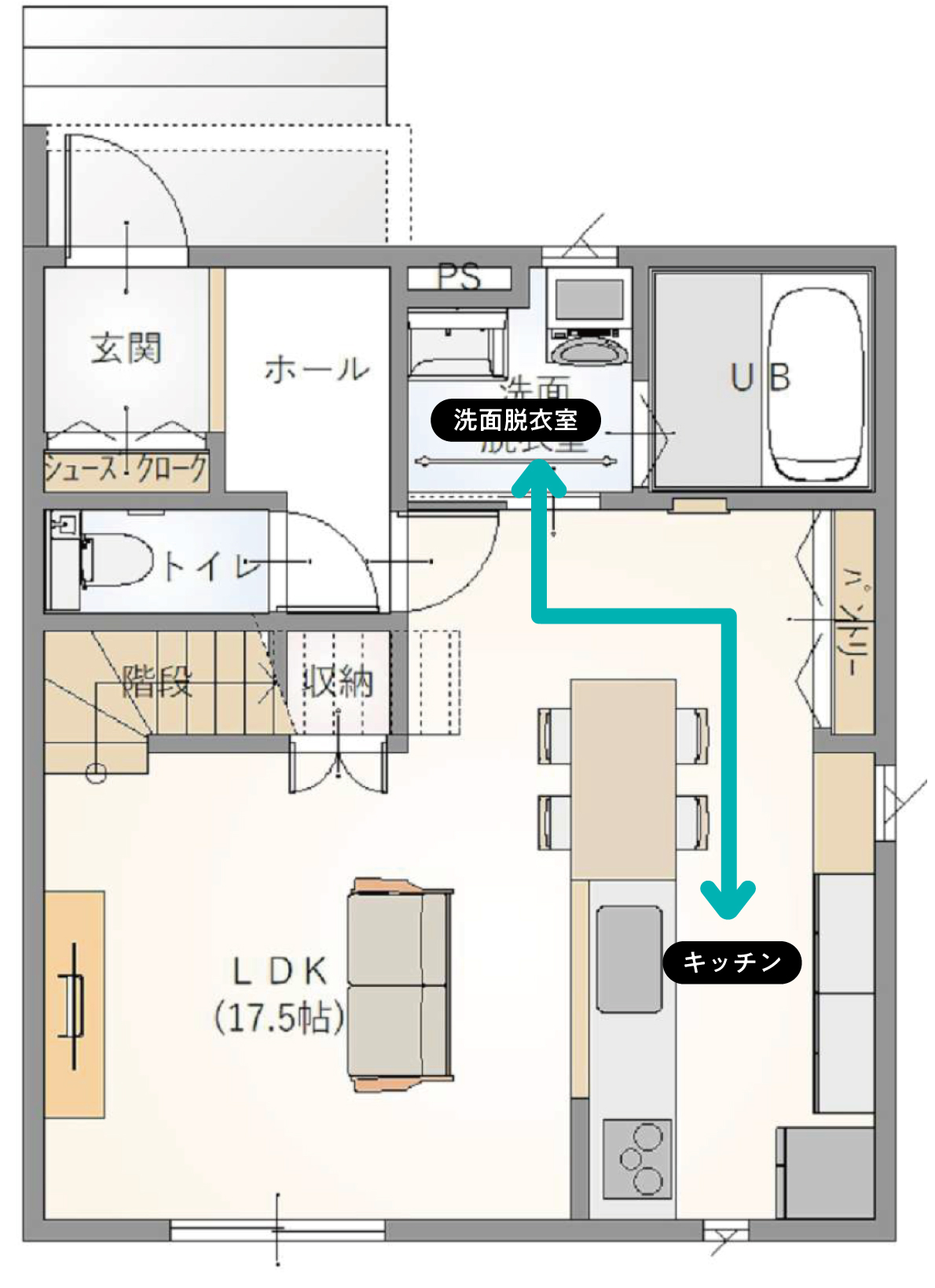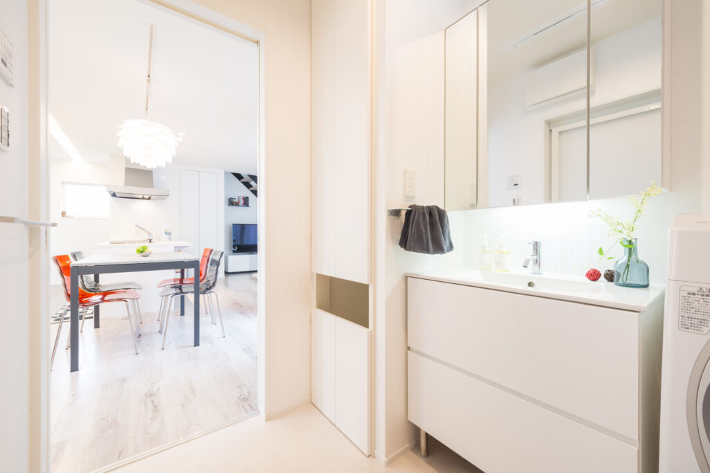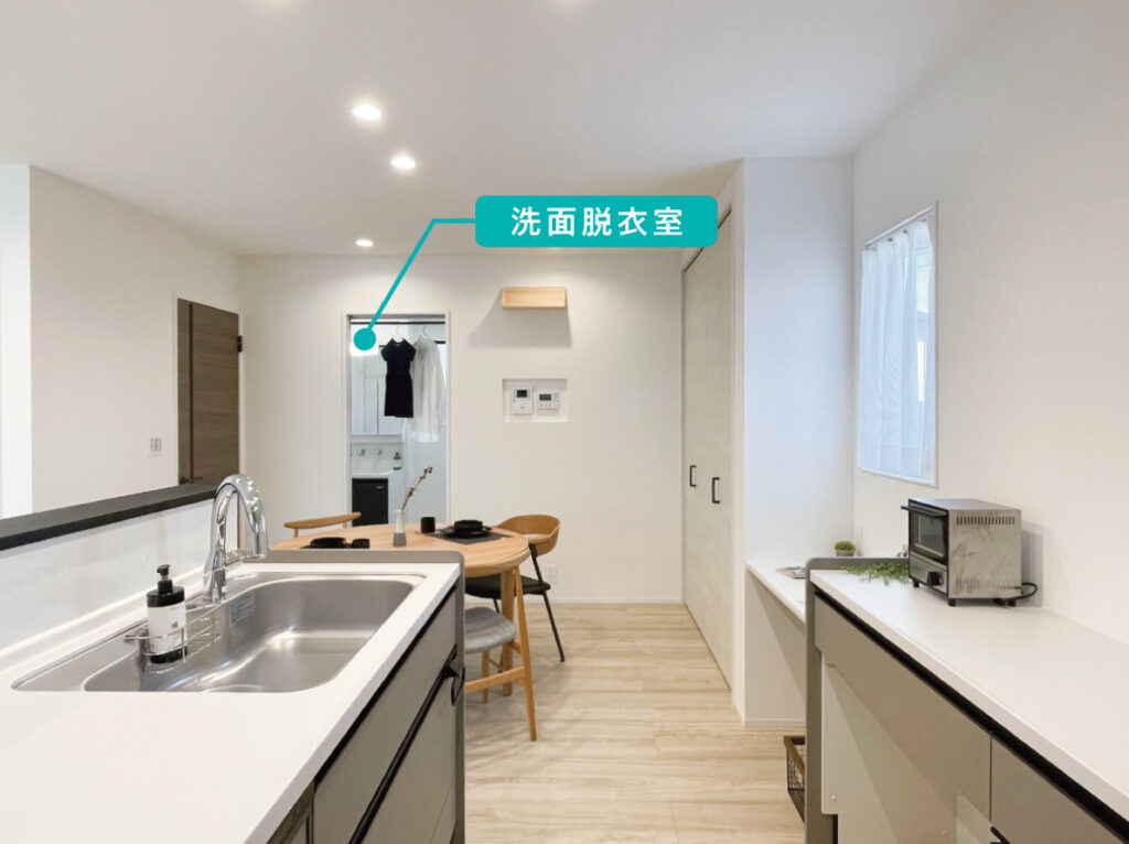 また、ダイニングキッチン横に洗面脱衣室があるため、料理と洗濯を同時にこなせて、忙しい毎日も効率的に動けます。