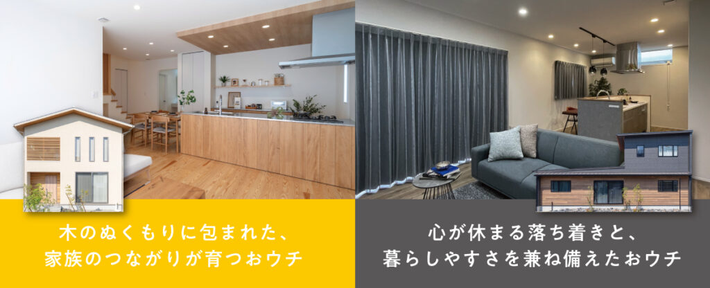 家族の暮らしを思い浮かべながら、じっくり体感できる2つのおウチ