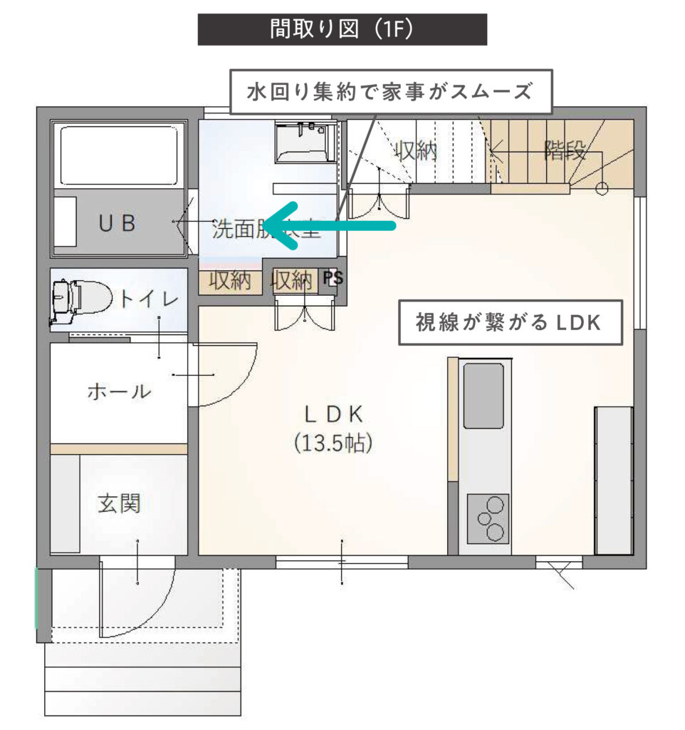 POINT2 水まわり集約で家事がスムーズ、収納も充実