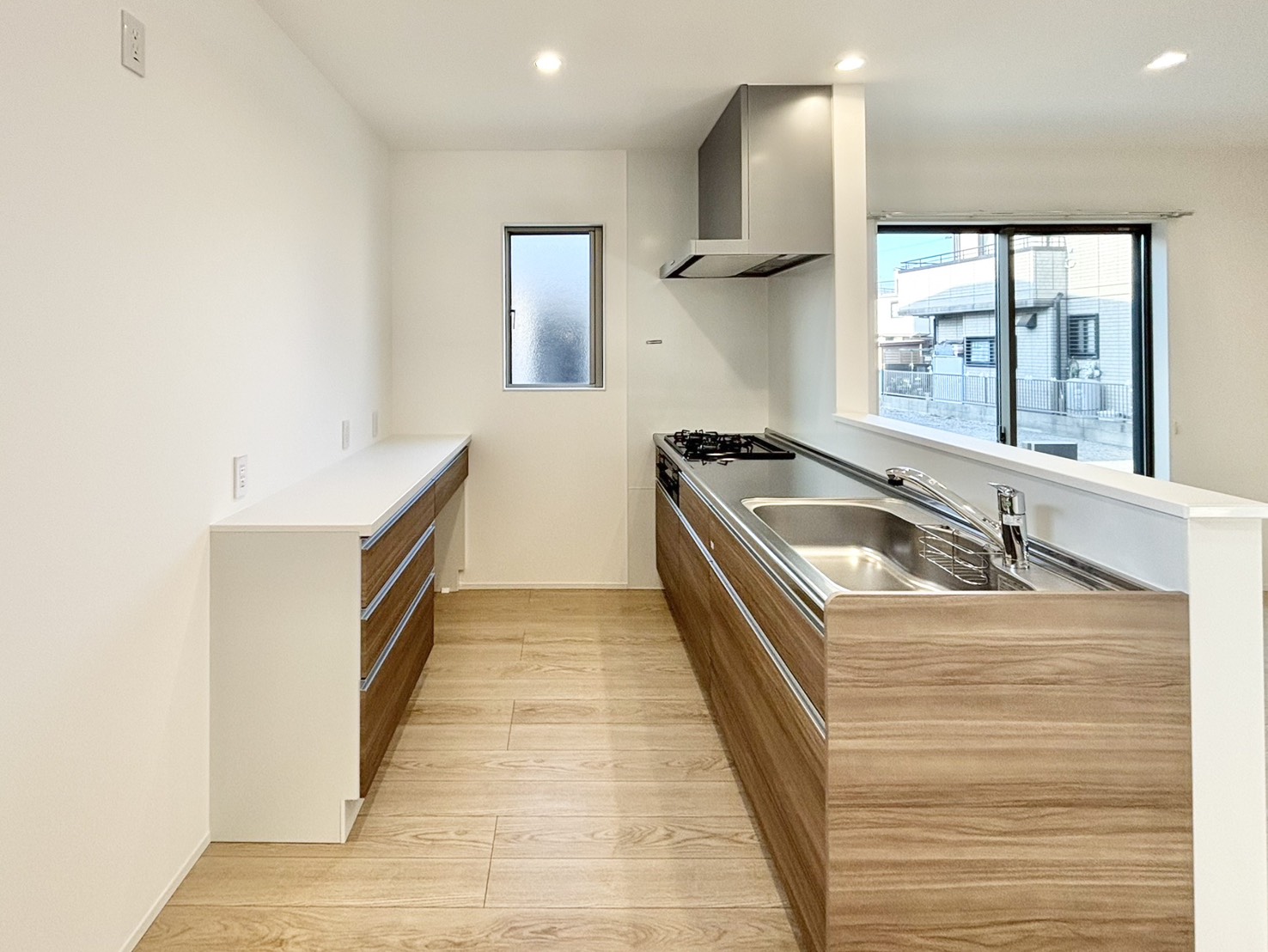 対面キッチンを採用し、リビング・ダイニングと自然につながる空間に。