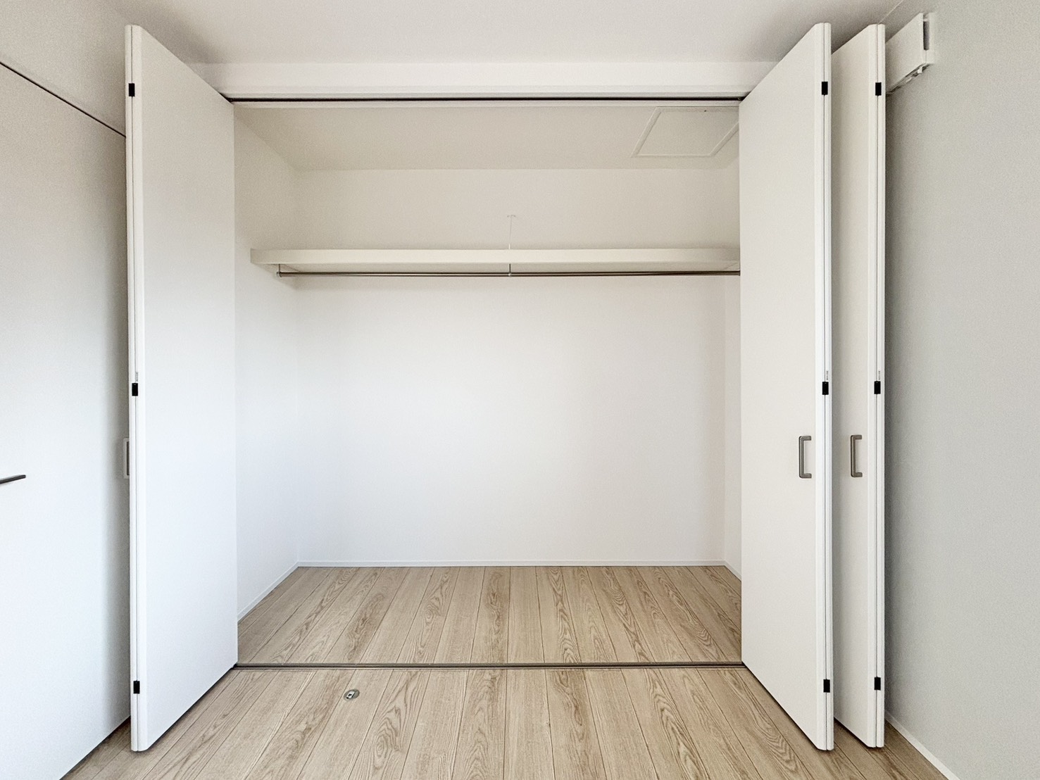 主寝室には大きめのクローゼット付きで、夫婦の服や季節物もまとめて収納できます。