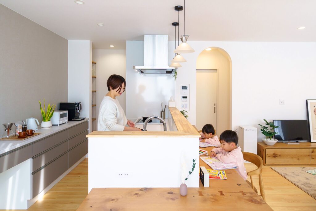 リビングで遊ぶ子どもの笑い声を聞きながら、キッチンで料理ができる安心の設計。