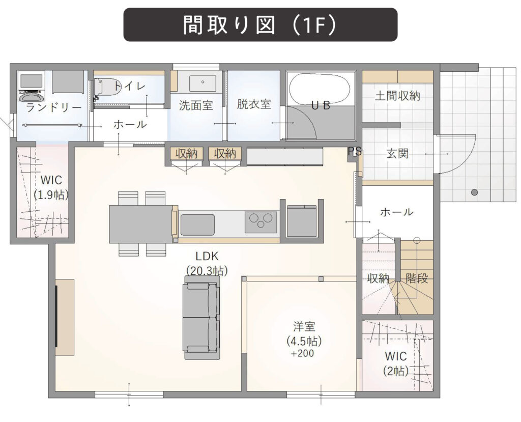 玄関収納、ランドリールームなど、日常の使いやすさを考えた細やかな工夫も。