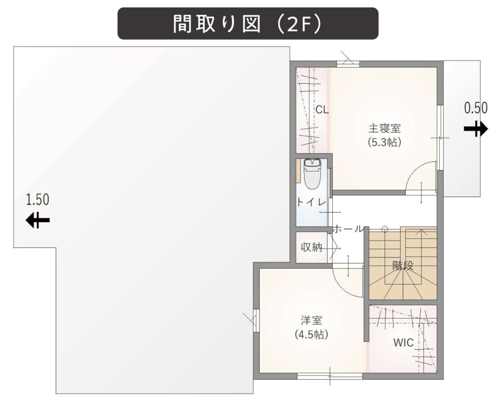 2帖のウォークインクローゼットも備え、将来は寝室として1階中心の暮らしを叶えます。