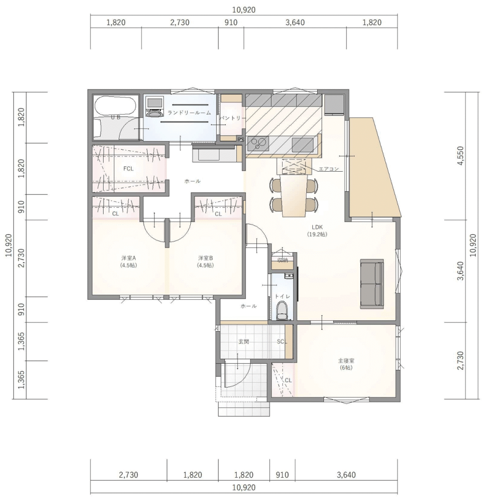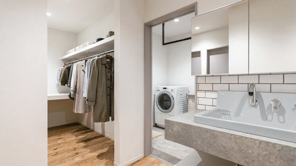 毎日の洗濯が気持ちよく進む、家事の負担をやさしく軽くしてくれる間取りです。