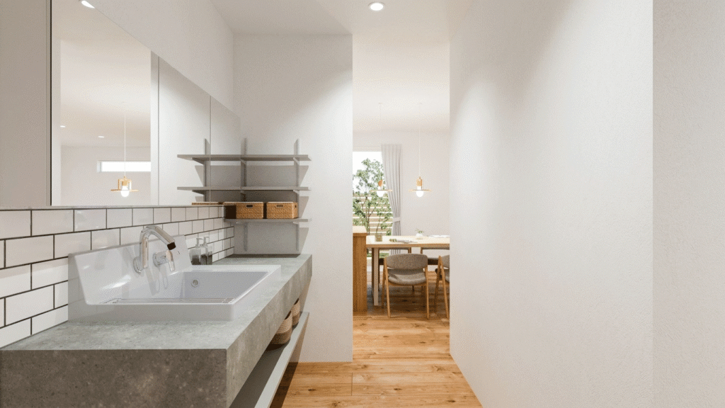 手洗いの習慣も自然と身につき、子育て世代にうれしい動線です。