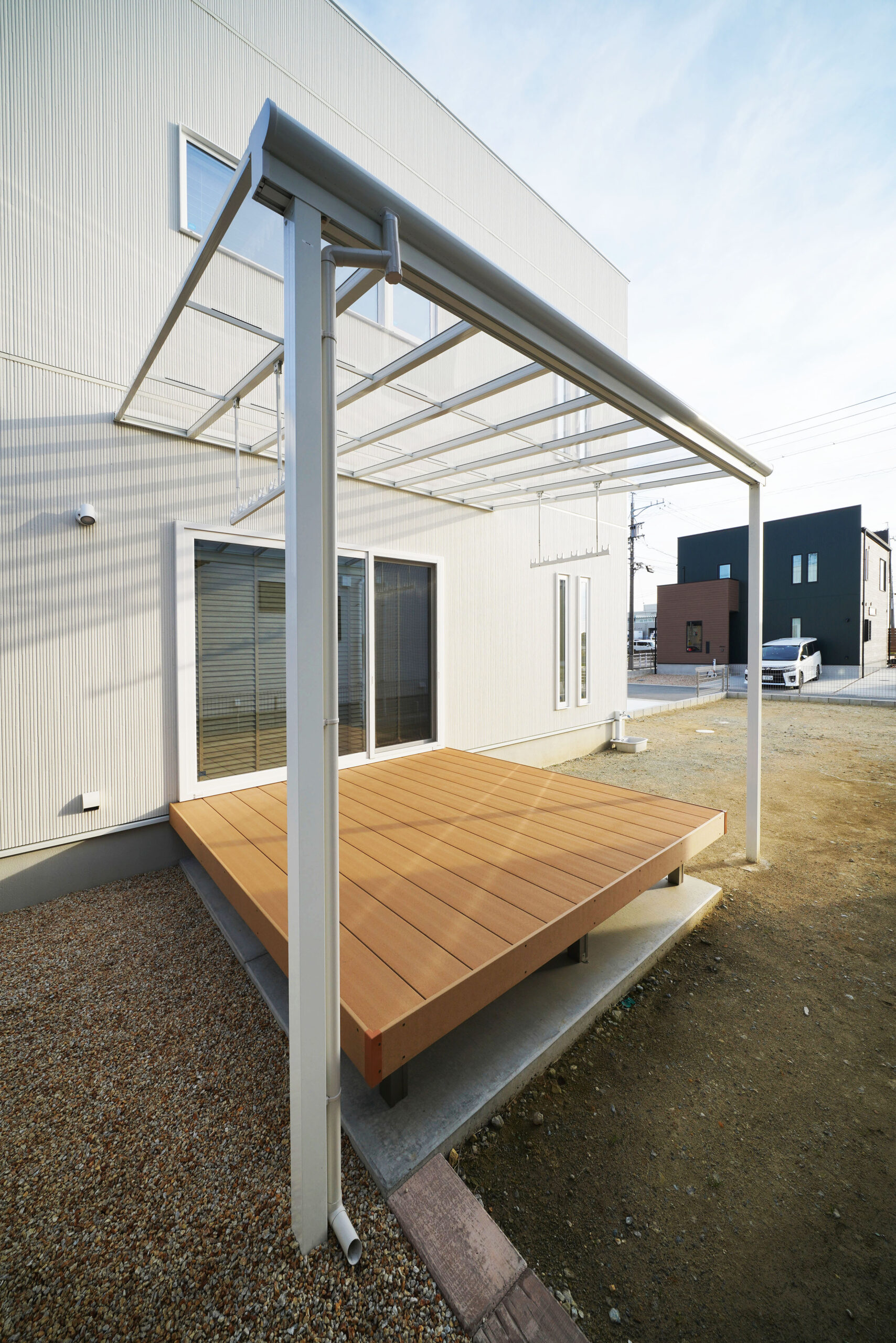 リビングから一体となるウッドデッキは、家族との団らんや洗濯スペースとしても重宝。