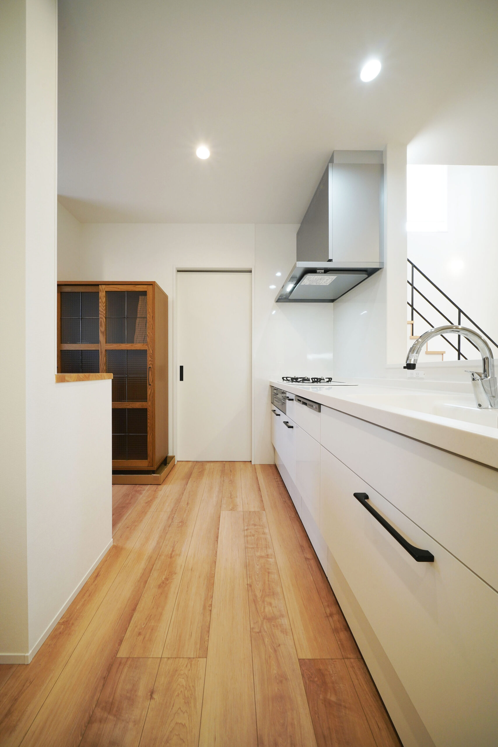 キッチン横の扉は玄関ホールとつながっており、買い物帰りに最短で荷物を運べる便利な動線。