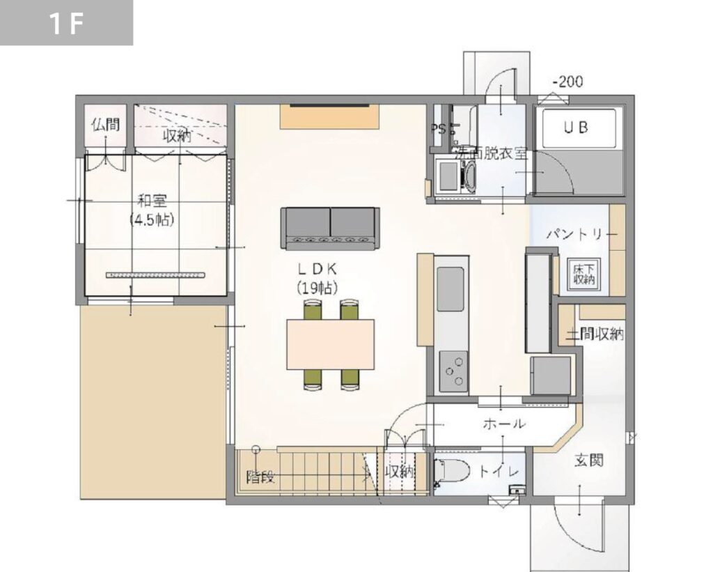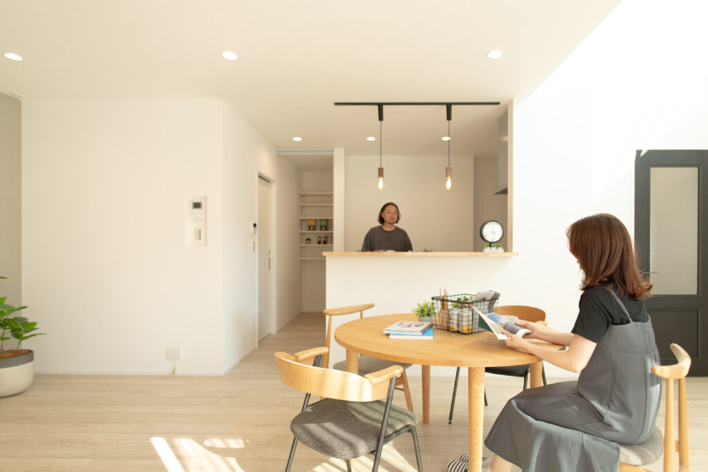 それぞれが家事をしながらも、自然と声をかけ合える、つながりのある間取りとなっています。
