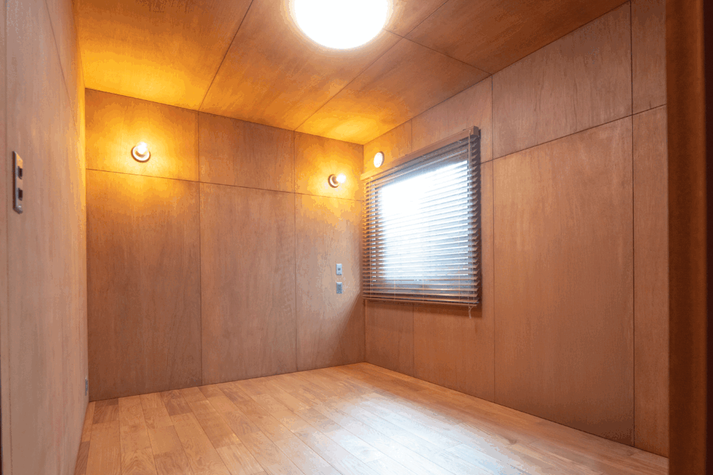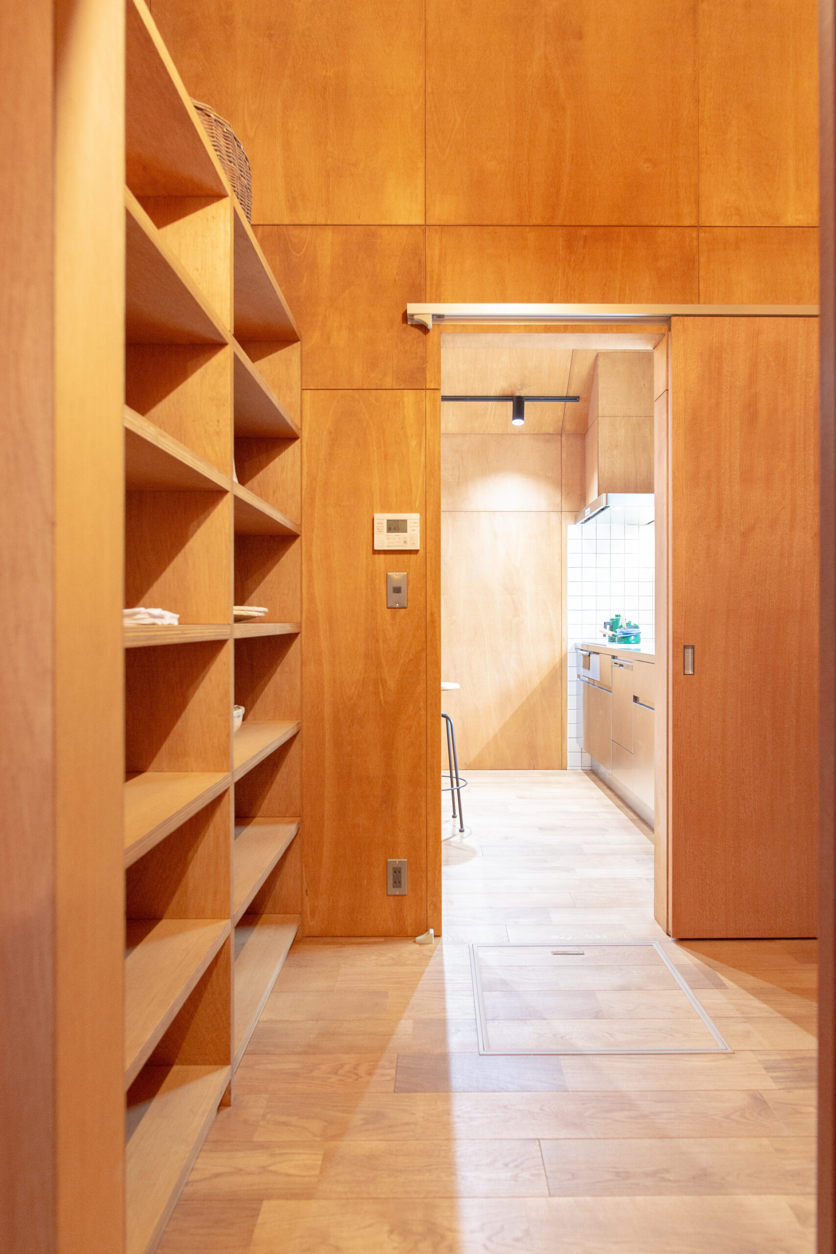こちらもラワン合板仕上げで、暮らしの変化に合わせて自由にアレンジできるよう設計しました。